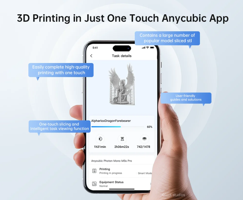 Wi-Fi Support – cloud printing and OTA updates via Anycubic App