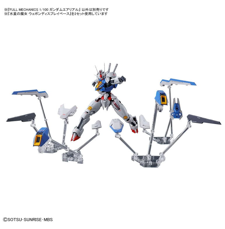 Aus der neuesten Gundam-Serie „Mobile Suit Gundam Witch of Mercury“ wird Gundam Aerial in der Standardserie „FULL MECHANICS“ im Maßstab 1:100 vermarktet! Der 1:100-Maßstab des Hauptkörpers erzeugt eine geschichtete Struktur, die nur reproduziert werden kann. Die in HG nicht nachgebildete Gehäuseeinheit erzeugt mit dreidimensionaler, ungleichmäßiger mechanischer Modellierung und plattierten Teilen einen leuchtenden Ausdruck. Die Schichtstruktur mit der transparenten Außenseite ermöglicht eine beeindruckende Teileanordnung. Die Beine sind mit einem Gleitmechanismus ausgestattet. Knie- und Oberschenkelpartien lassen sich verschieben, um der Bewegung des stehenden Knies zu folgen. Die Zehenpartien sind zudem geteilt, um einen natürlichen Bodenkontakt zu simulieren. Der Schild kann in 11 Blöcke unterteilt und als Gambit eingesetzt werden. Er lässt sich mit verschiedenen Teilen des Flugzeugs verbinden und hat eine Struktur als originelles Gimmick für Plastikmodelle. Mit der separat erhältlichen „Witch of Mercury“-Waffendisplay-Basis können Sie das Display mit eingesetztem Gambit nachbilden. [Zubehör] Handteile x 1 Strahlenschwert x 2 Strahlengewehr x 1 Schild x 1 Effektteile für Strahlengewehr x 1 Gelenkteile x 1 Dichtung x 1