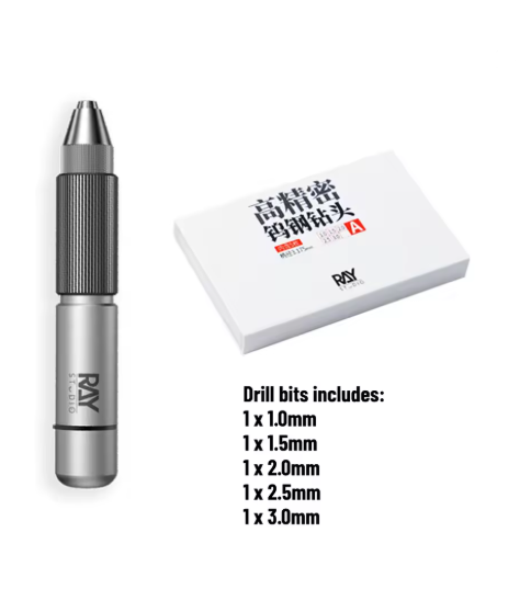 The Ray Studio RHD-01 Drill Bit Set is a precision tool kit designed specifically for scale modelers, Gunpla builders, and hobbyists who require clean, accurate drilling for detailing and modification work. Whether you're opening thruster ports, adding panel line accents, or preparing parts for metal pins and custom assemblies, this set provides the control and precision needed for professional results.